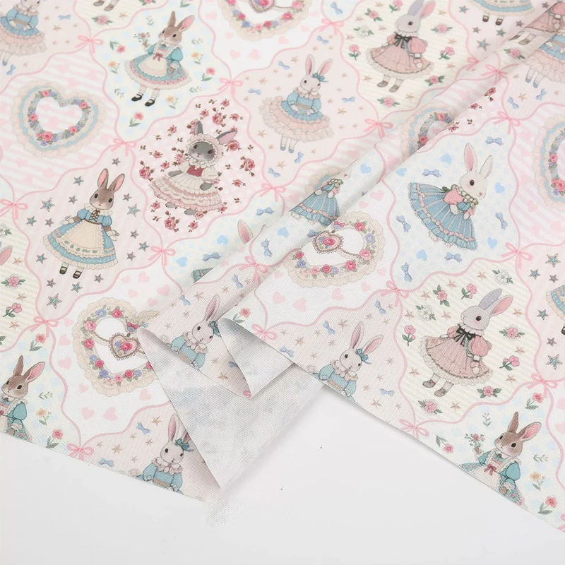 0.5m/1m/2m Thickened Canvas Little Rabbit Print Fabric for Sewing Canvas Bags Tablecloths Curtains Decoration Cloth DIY Fabrics