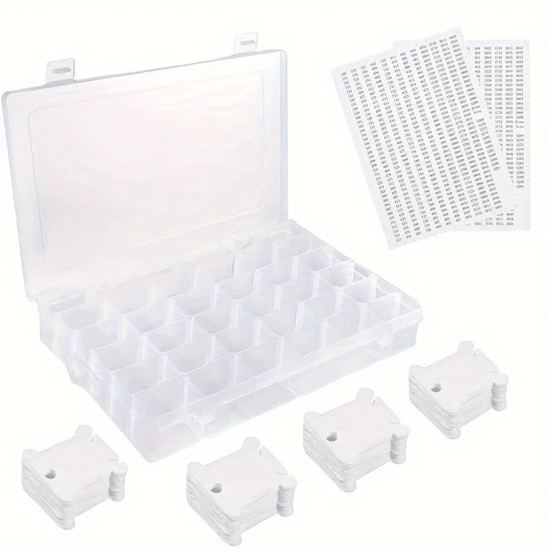1Pc 36 Grids Plastic Embroidery Floss Organizer Box 60 Winding Card 2PCS Number Stickers for Embroidery Sewing Storage Box