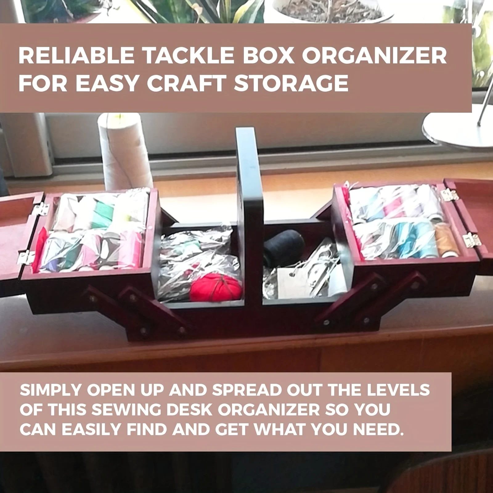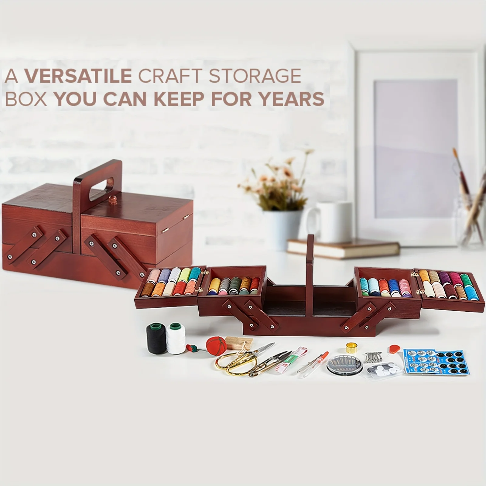 1pcs Wooden Expandable Sewing Box Sewing Kit Storage Box with Handle, Embroidery Kit Wooden Sewing Basket