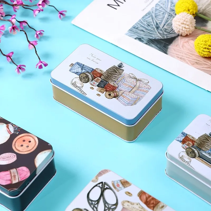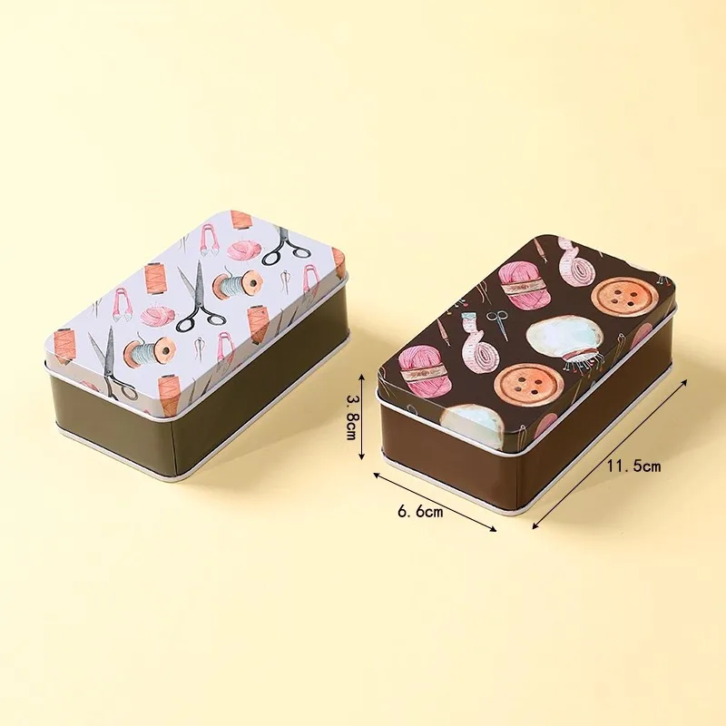2Pcs Sewing Print Collectables Tin Box Square Seal Storage Box Needlework Kit Storage Button Case Candy Chocolate Container