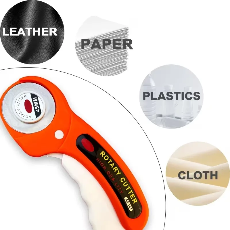 45mm Rotary Cutter with 5pcs Replacement Blades Ergonomic Handle Rolling Cutter with Safety Lock for Fabric Leather Quilting