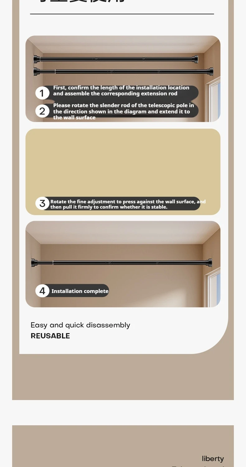 → No need to punch! Rotation adjustment length (70-280cm), door frame/wall/partition can be stuck tight, rental party, lazy Gospel, move can be reused.