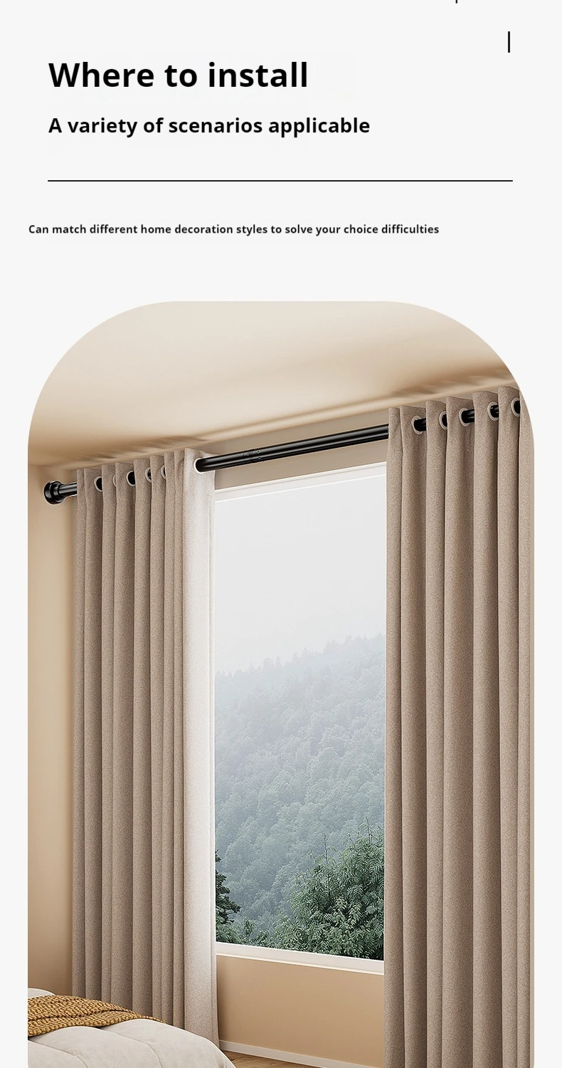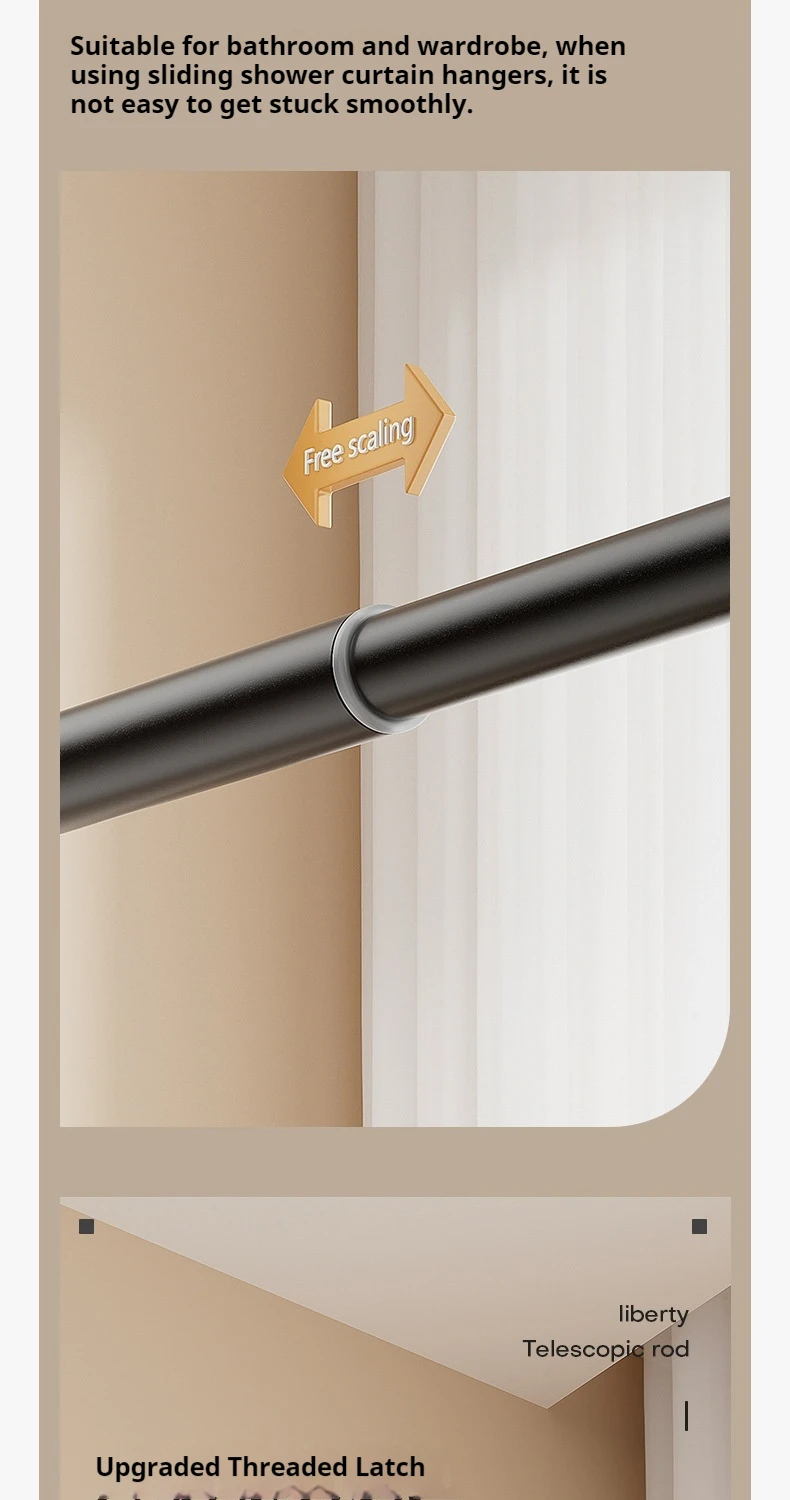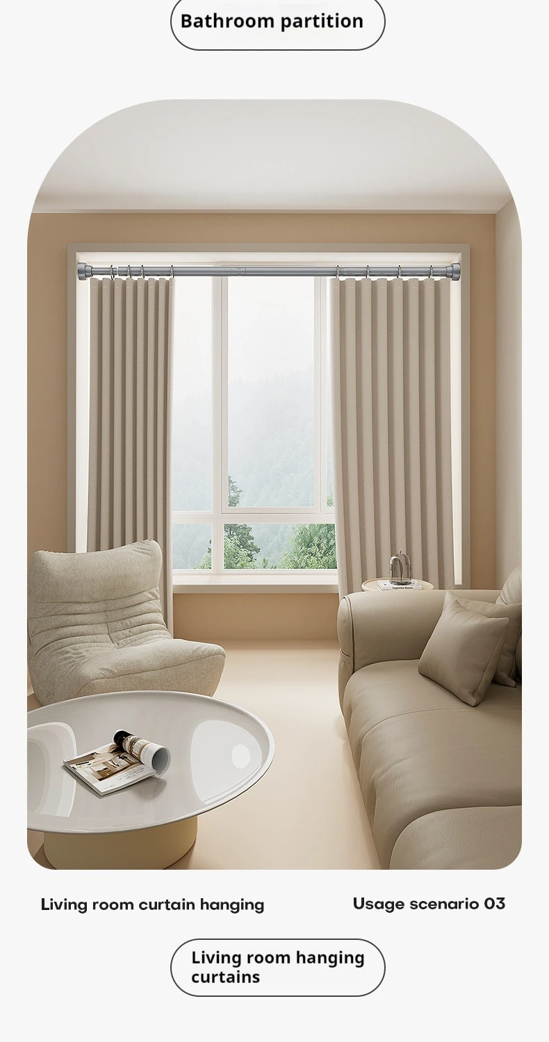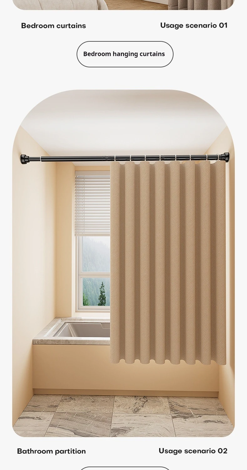 → Matte black texture, seamlessly integrated into the Nordic/modern /Ins wind bathroom; One bar multi-purpose: shower curtain rod, kitchen storage rod, balcony clothes drying rod, scene free switch.