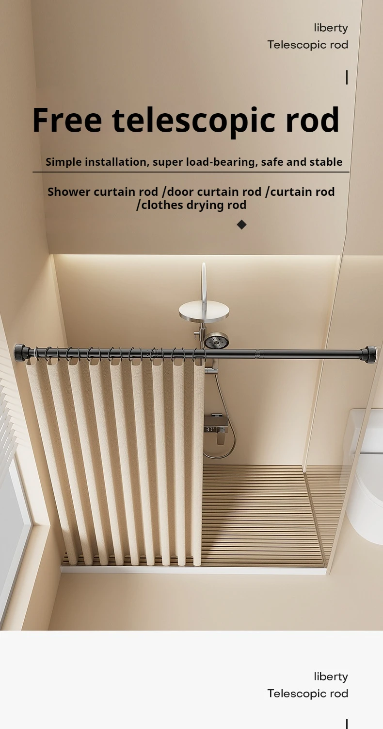 🔥 hot sale! Stainless steel retractable shower curtain rod | non-punching | super load-bearing | suitable for all scenarios **