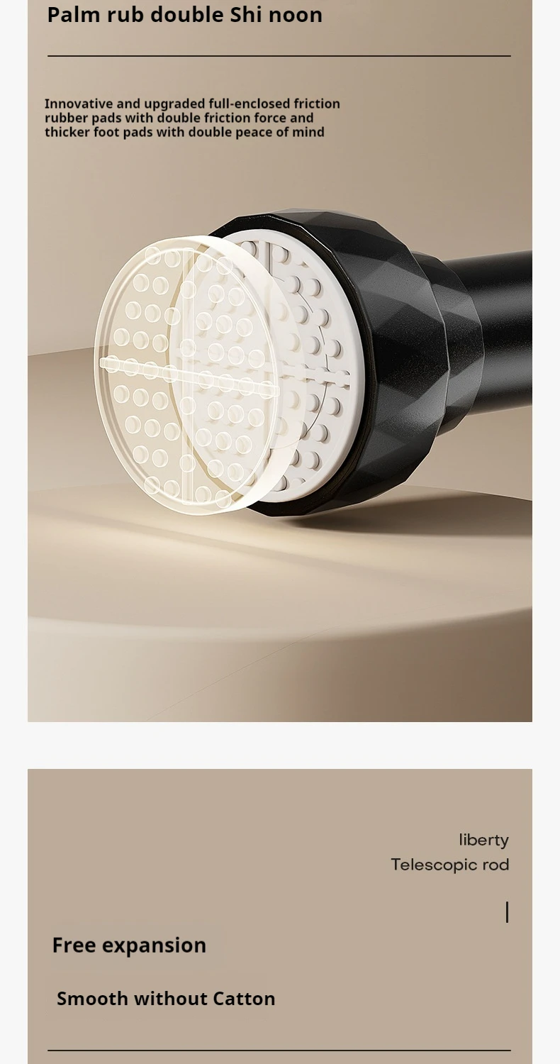 → Thickened tube wall + non-slip rubber head, bearing capacity up to 15kg! Hanging heavy shower curtain + hanging storage basket does not sag, shaking test passed, safe.