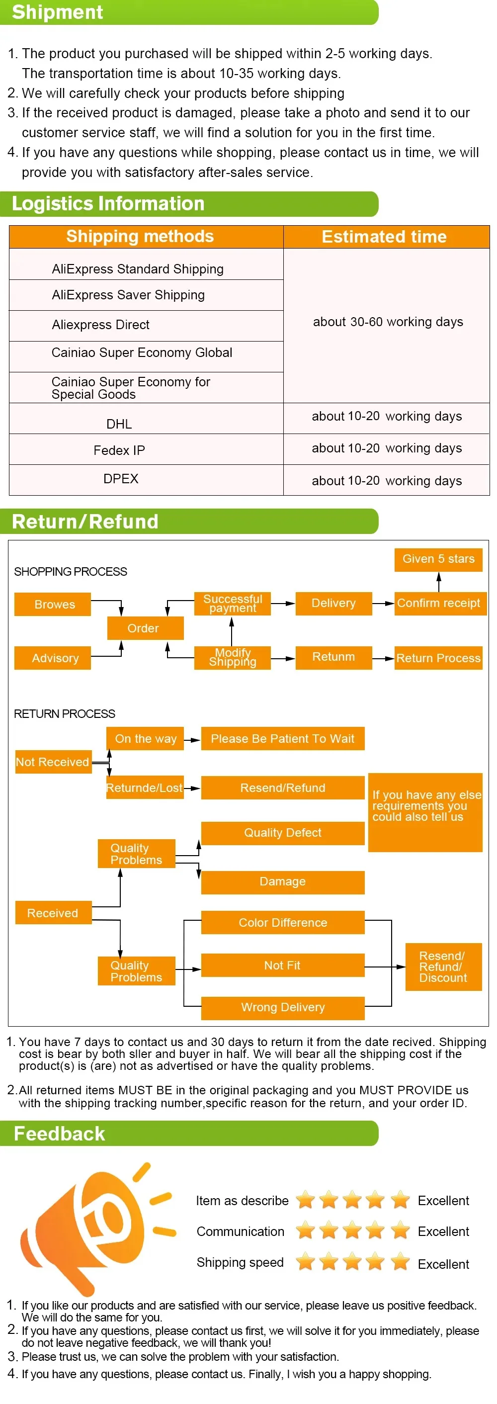 Your satisfaction is our #1 priority. Therefore, you can request a refund or reshipment for ordered products if: