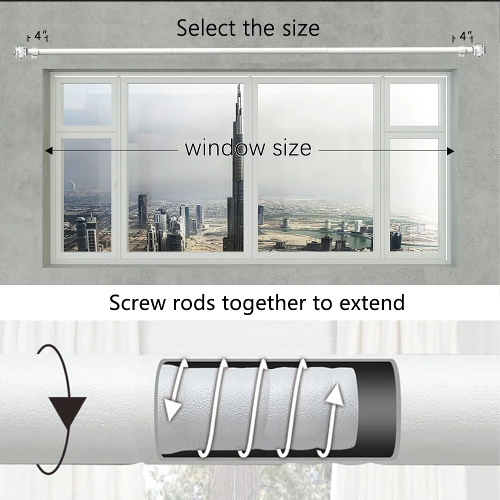 Classic and Simple 5/ 8inch Curtain Rod, Transparent Crystal Style Decorative Head, Sturdy and Durable, Suitable for 28-144inch Windows, White Curtain Rod Bracket Set, Simple Installation, Suitable for Bedroom, Kitchen, Living Room, Dining Room, Office Visually Beautiful and Cool, Modern Style Curtain Rod