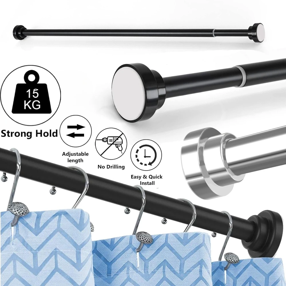 Extendable Shower Curtain Rod Curtain Tension Pole 50-260CM No Drill Telescopic Curtain Pole Adjustable Strong Shower Rail