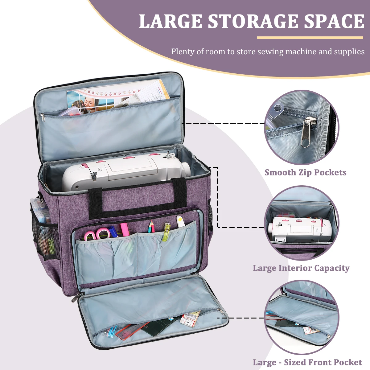 Large Sewing Machine Carrying Case Multi-functional Portable Travel Storage Bag Multiple Pockets Sewing Accessories Storage Tote
