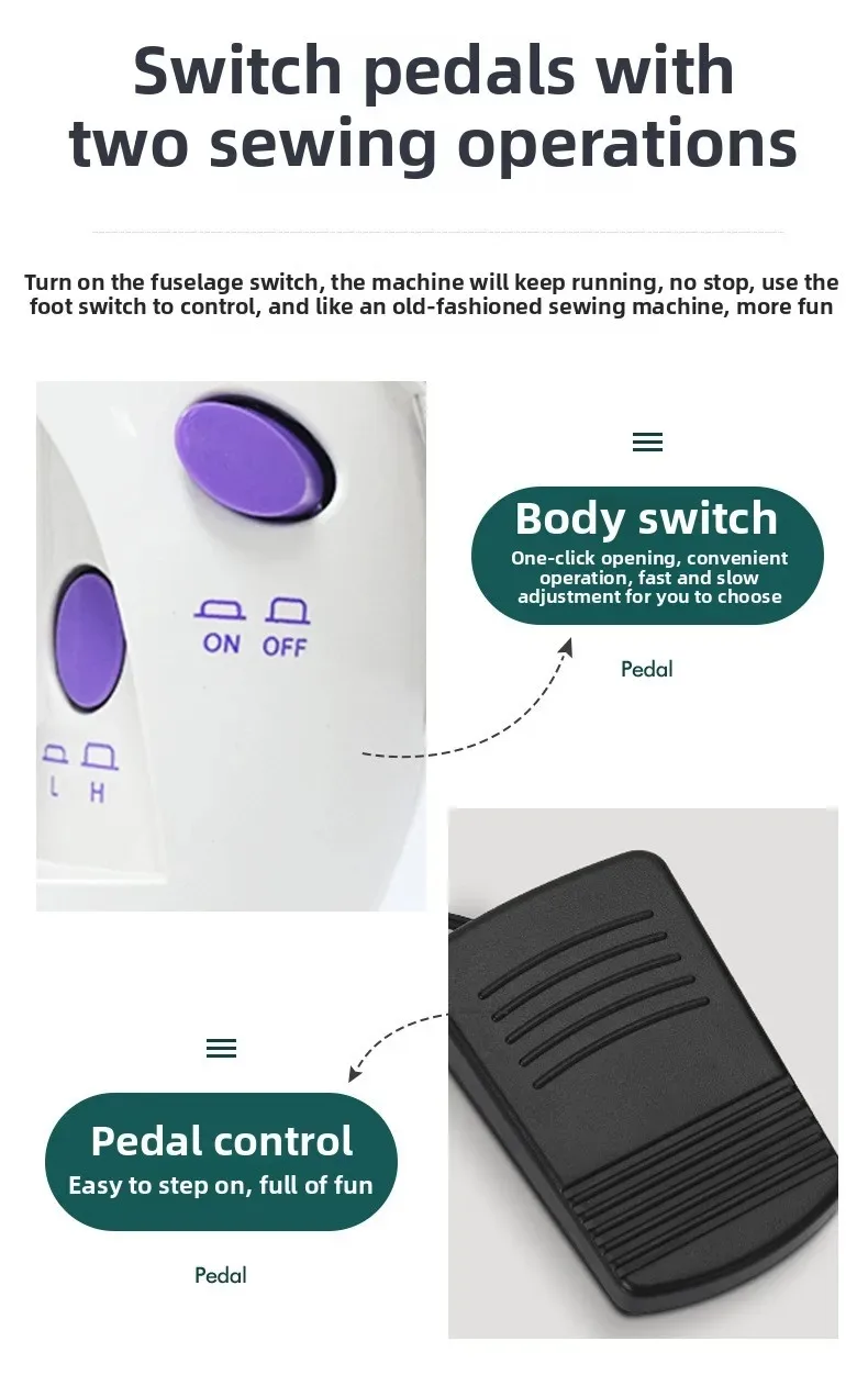 Mini household electric sewing machine, single line, suitable for voltage 100-240V, foot switch, with LED light, expansion table