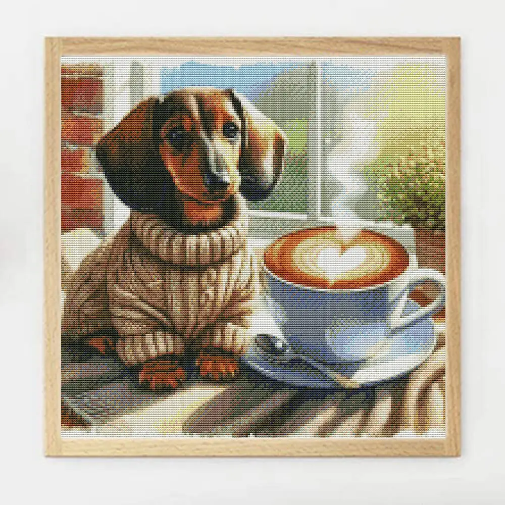 Momoart Cross Stitch Kit Dog Animal DIY Embroidery Supplies Coffee Cup New Arrivals 11ct Printed Canvas Handmade Hobby