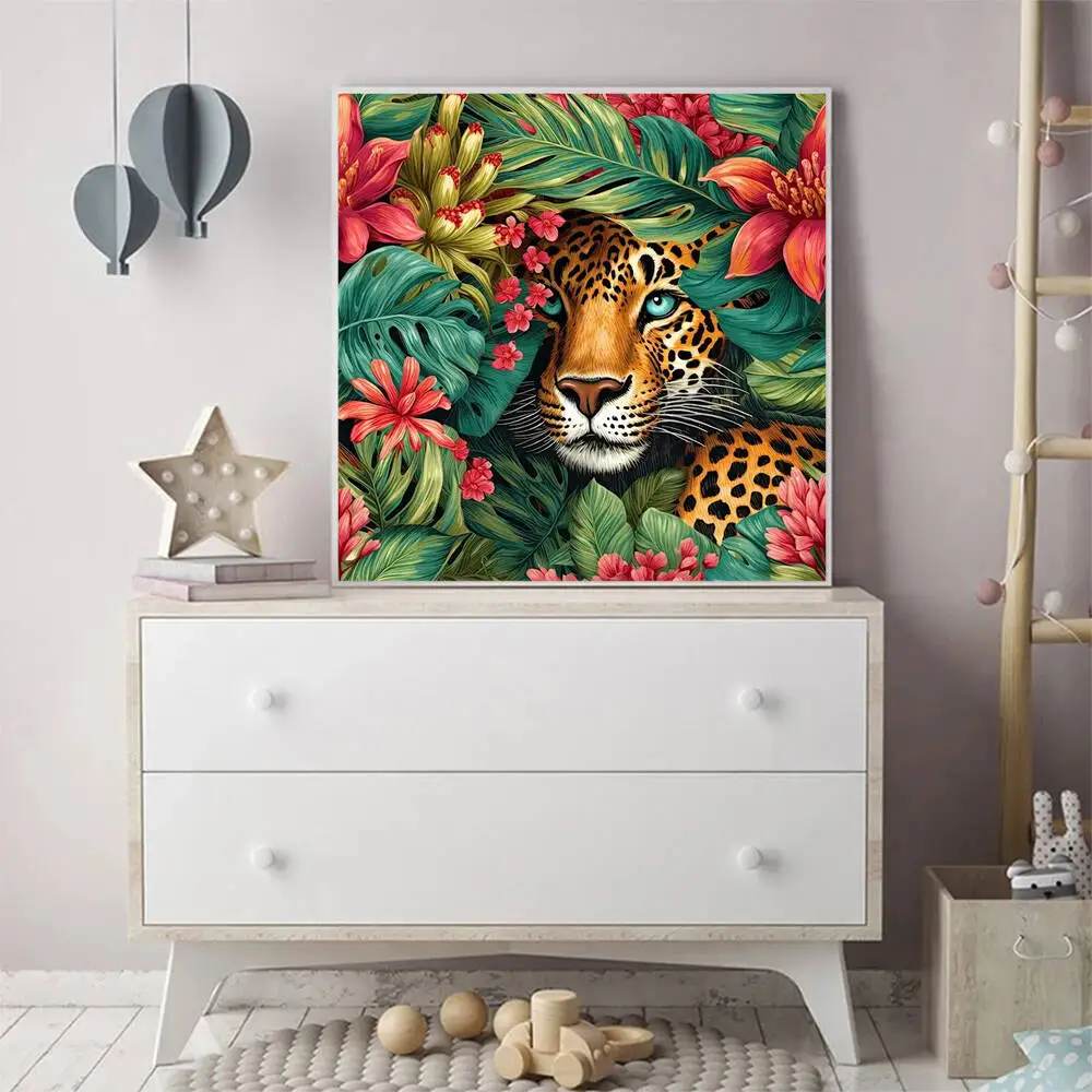 Momoart New Arrival Printed Cross Stitch Kit Leopard Animal Needlework 11ct Printed Canvas Embroidery Flower Handmade Gift