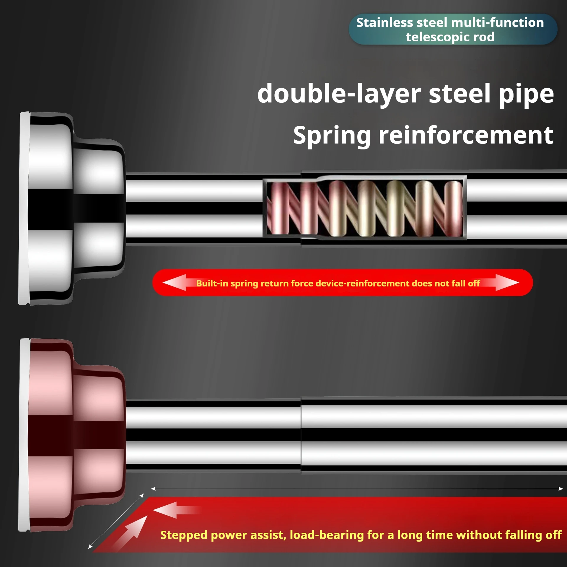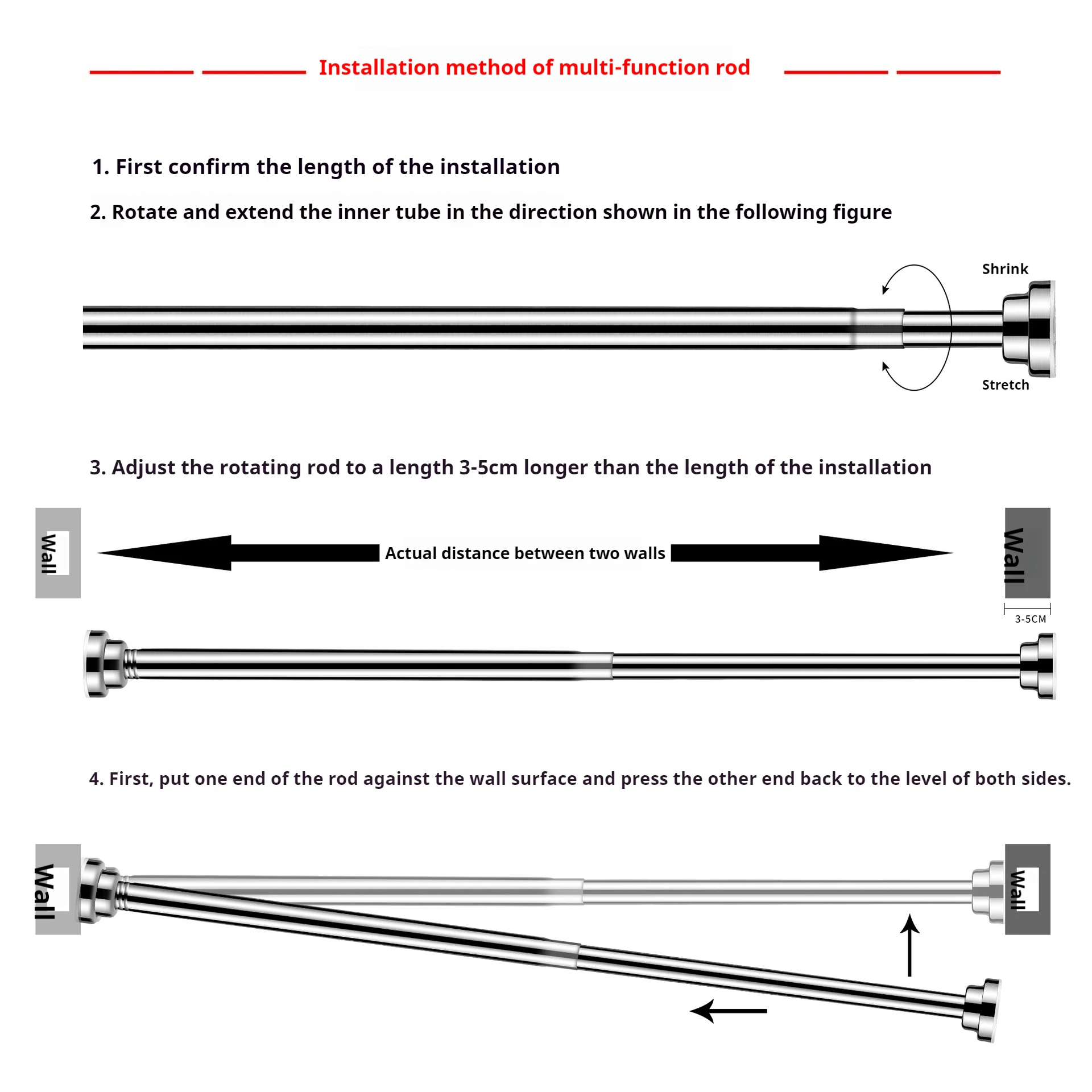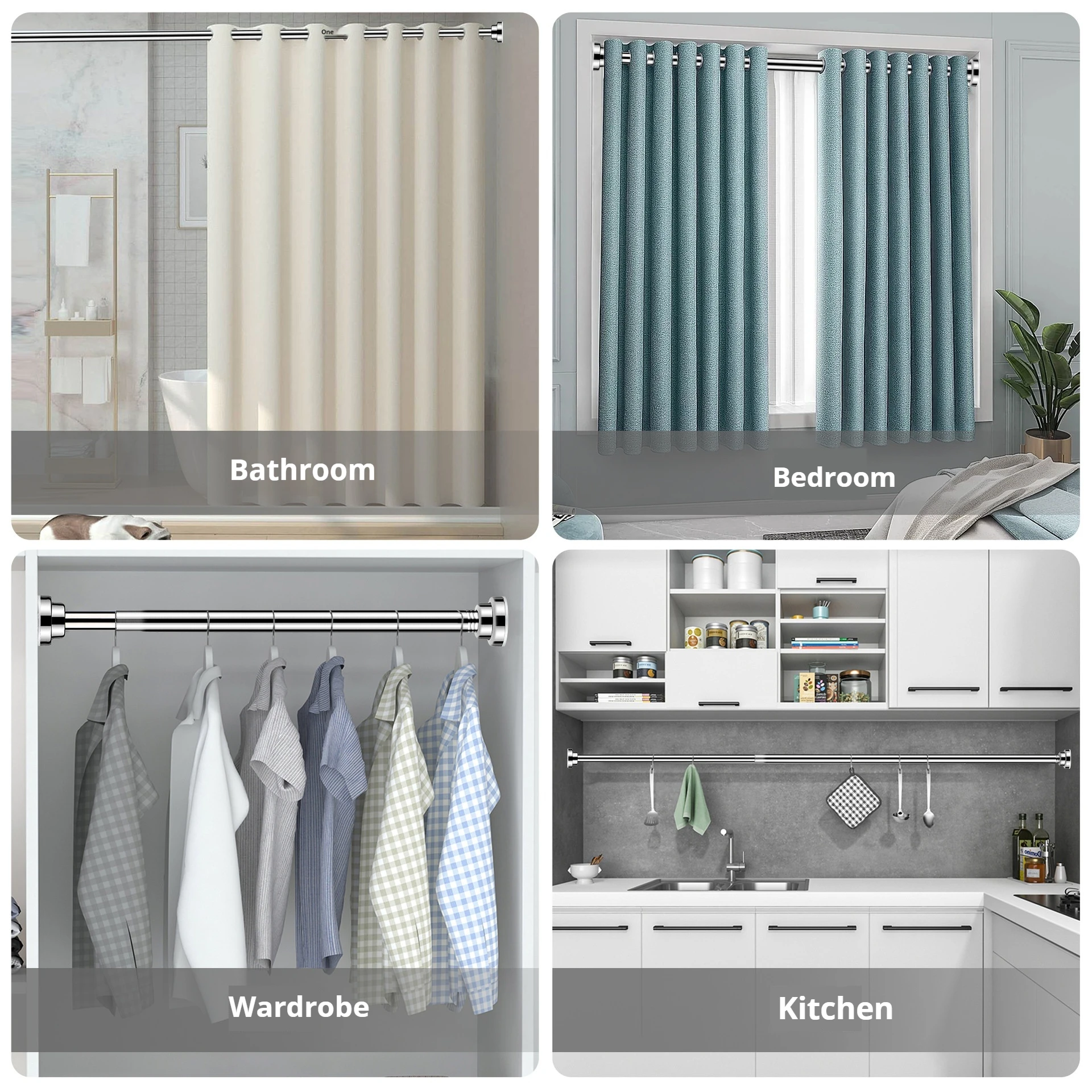 No Drilling Needed Tension Shower Curtain Rod Stainless Steel Rust Proof Non-Slip Spring Adjustable Pole for Bathroom Shower