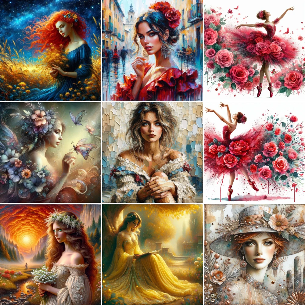 Portrait Girl Flowers Pre-Printed 11CT Cross-Stitch Full Kit Embroidery Painting Handicraft Sewing Craft Mulina Different Sales
