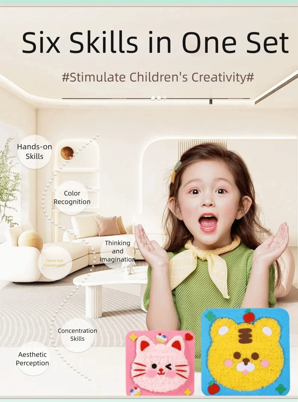Materials included: Non-woven fabric base, wool, safety needle, non-woven fabric patch