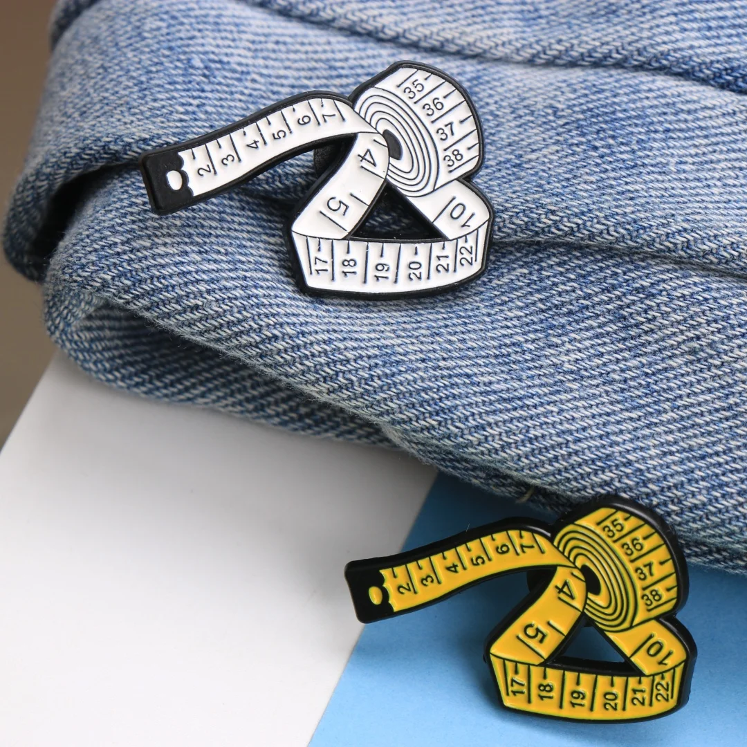 Tape Measure Enamel Pins – Cartoon Ruler Lapel Badges for Tailor & Sewing DIY Punk Jewelry Gifts