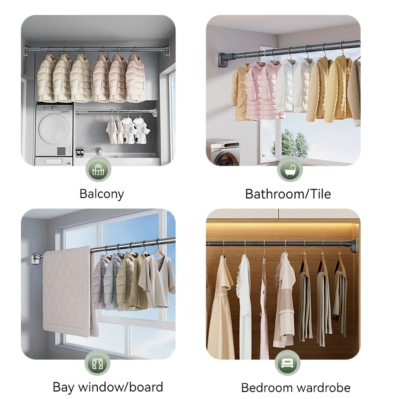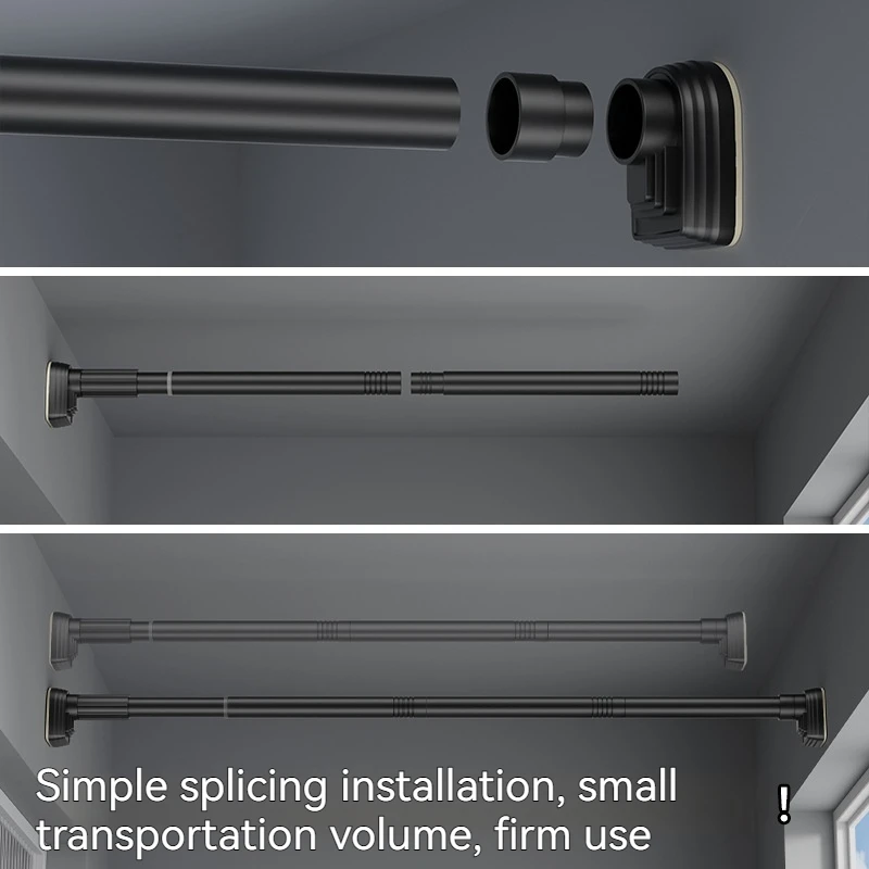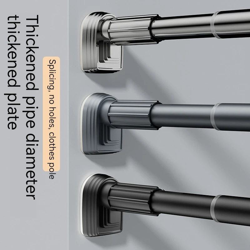 Up To 2.7m Adjustable Stainless Steel Shower Curtain Rod Clothes Drying Rack No-Drill Telescopic Pole for Laundry Room Bathroom