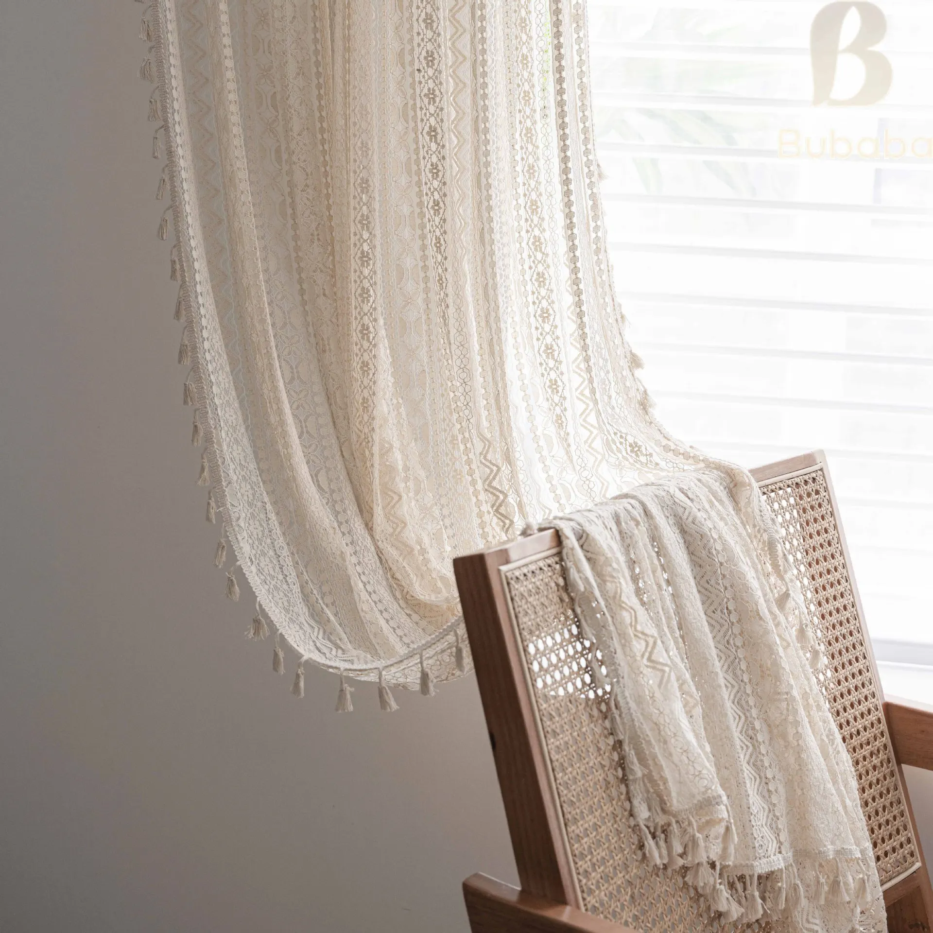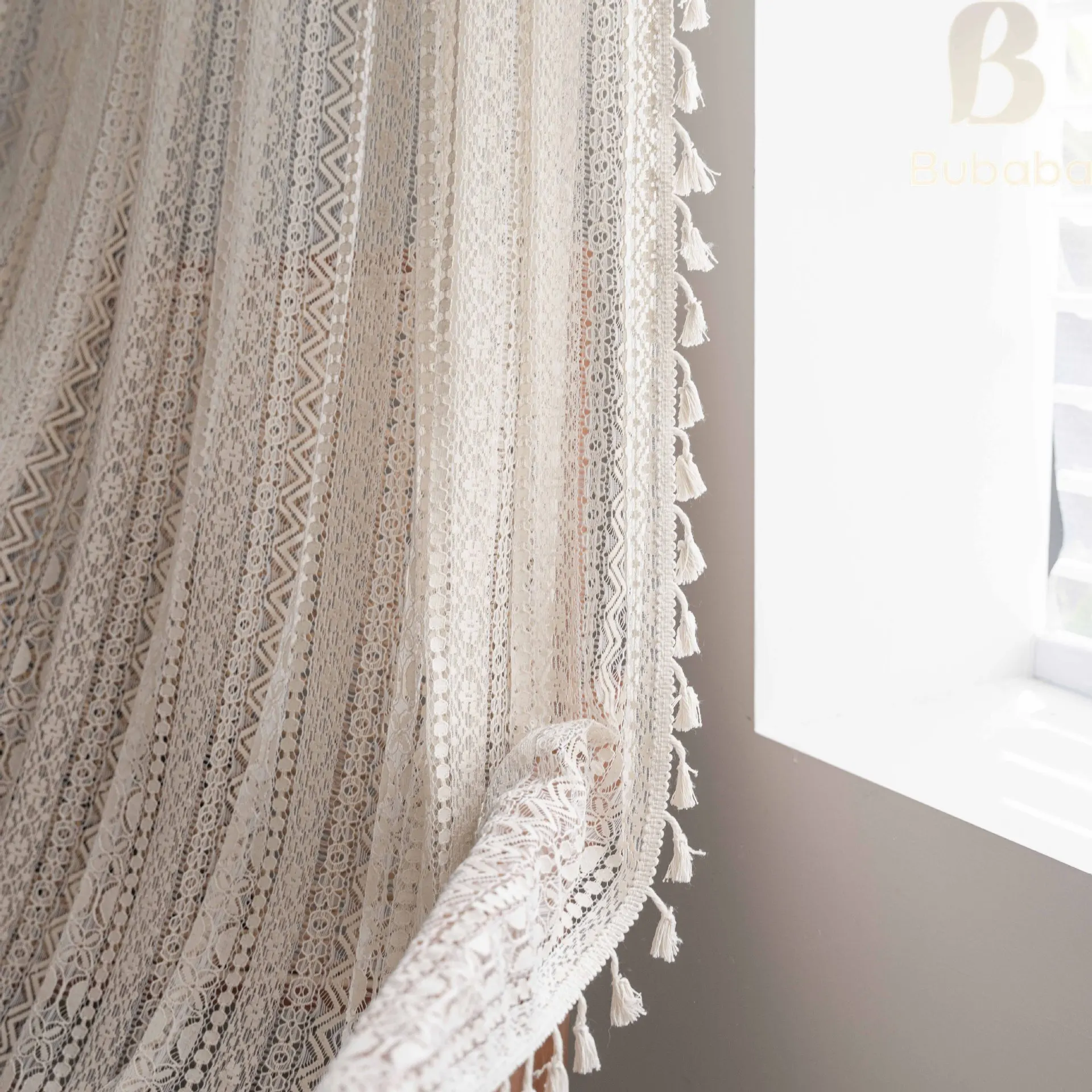 This semi-curtain is French chiffon ruffled lace ,100% cotton, semi-transparent,suitable for any style of room, such as bedroom, living room, dining room, kitchen, bathroom, children’s room, etc.